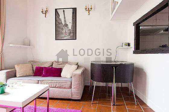 Graças a sua altura de teto, um mezanino foi possível de ser instalado em este apartamento , oferecendo-lhe uma verdadeira peça suplementar equipada de lençois, colchas, 1 poltrona(s), secretária, comoda, viga, 1 cadeira(s).