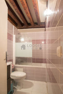 Este apartamento é equipado de uma casa de banho. Esta sala de água dispõe do necessário pelo seu bem estar na sua vida quotidiana : viga, sink. Os WC são integrados na casa de banho.