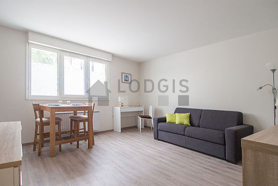 SalaõEste apartamento é composto de um magnífico salão janelas. Este salão very quiet mobiliado et equipado para uma agradável estância : televisaõ, lençois, colchas, sofá, mesa de jantar, mesinha, roupeiro, bufet, 3 cadeira(s)1 sofá-cama.