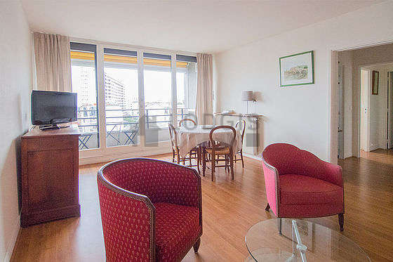 Este apartamento é composto de um soberbo salão com parqué no piso é janelas com balcão. Este salão very quiet mobiliado et equipado para uma agradável estância : televisaõ, 2 poltrona(s), mesa de jantar, mesinha, 4 cadeira(s)1 cama embutida.