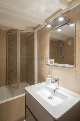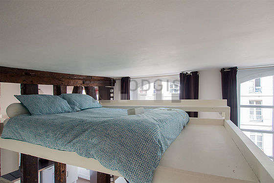Graças a sua altura de teto, um bonita mezanino foi possível de ser instalado em este apartamento , oferecendo-lhe uma verdadeira peça suplementar equipada de lençois, colchas.
