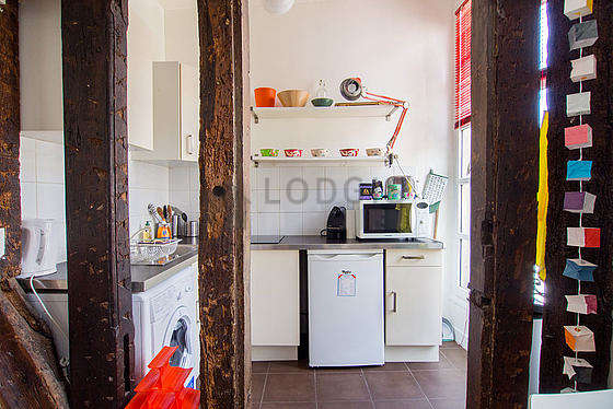 Este apartamento tem uma magnífico cozinha com azuleijo no piso e todo o equipamento pela sua vida quotidiana : fogaõ, microondas, exaustur, chaleira, máquina de café.