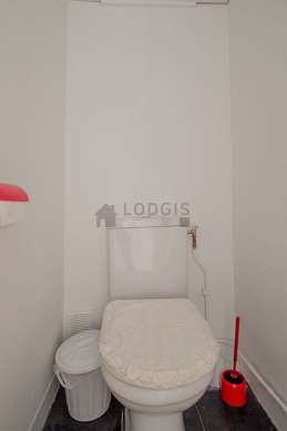 Este apartamento é equipado de uma casa de banho agradável é clara. Esta sala de água dispõe do necessário pelo seu bem estar na sua vida quotidiana : prateleira, banheira, secador, wall light, mirror, towel rack. Os WC são separados da casa de banho e situados em uma peça independente.