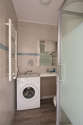 Este apartamento tem uma magnífico cozinha com parqué no piso e todo o equipamento pela sua vida quotidiana : fogaõ, frigorífico, microondas, freezer, torradeira, chaleira, máquina de café, prateleira, armário, loiça.