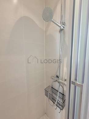 Este apartamento é equipado de uma casa de banho agradável. Esta sala de água dispõe do necessário pelo seu bem estar na sua vida quotidiana : toalhas de banho, armário, ducheiro separado, sink. Os WC são separados da casa de banho e situados em uma peça independente.