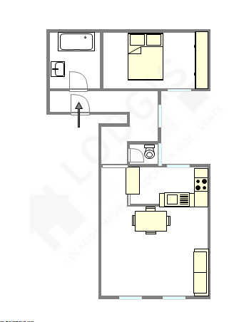 Este apartamento é equipado de uma casa de banho magnífico é clara. Esta sala de água dispõe do necessário pelo seu bem estar na sua vida quotidiana : toalhas de banho, ducheiro separado, sink. Os WC são separados da casa de banho e situados em uma peça independente.