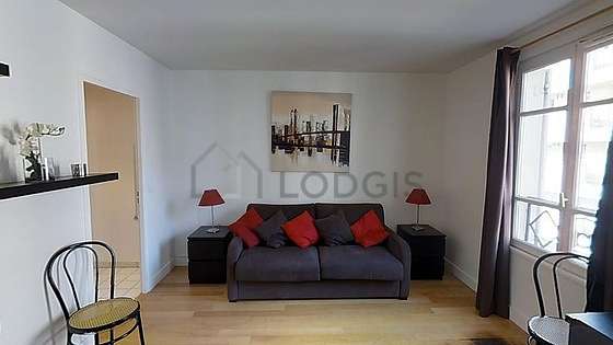 Este apartamento é composto de um bonito salão com parqué no piso vista sobre rua. Este salão calmo mobiliado et equipado para uma agradável estância : televisaõ, lençois, colchas, mesa de jantar, mesinha, secretária, roupeiro, prateleira, armário, 4 cadeira(s), mesinha de cabeceira, tv stand1 cama dubla que pode ser separada em duas.