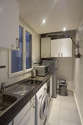 Este apartamento tem uma magnífico cozinha com azuleijo no piso e todo o equipamento pela sua vida quotidiana : fogaõ, frigorífico, congelador, micro-ondas combinado, chaleira, prateleira, armário, loiça.