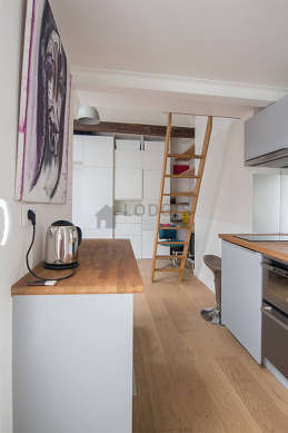 Este apartamento é composto de um charmoso salão com parqué no piso vista sobre pátio. Este salão very quiet mobiliado et equipado para uma agradável estância : televisaõ, lençois, colchas, sofá, 1 poltrona(s), mesinha, secretária, roupeiro, prateleira, armário, viga, 3 cadeira(s), banco1 cama em mezanino.