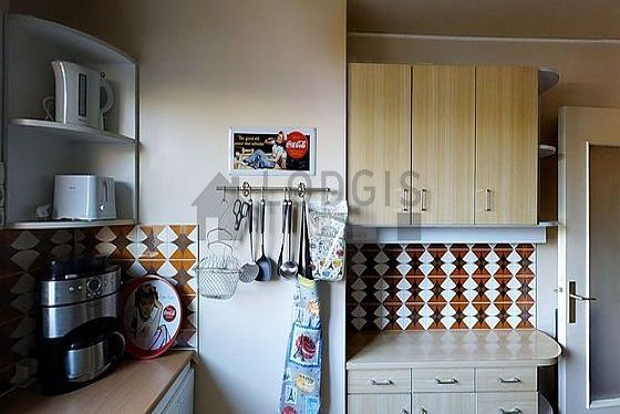 Este apartamento tem uma bonita cozinha com azuleijo no piso e todo o equipamento pela sua vida quotidiana : fogaõ, frigorífico, congelador, forno, microondas, exaustur, torradeira, chaleira, máquina de café, prateleira, armário, loiça.