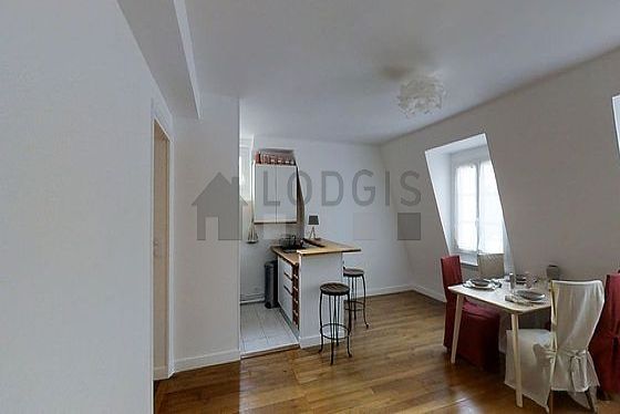 A fim de partilhar suas refeições no ambiente de convivialidade durante sua estância em Paris, este apartamento dispõe de uma agradável sala de jantar que pode acolher até 4 convivas graças a mesa de jantar, armário, 4 cadeira(s).