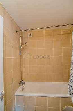 Este apartamento é equipado de uma casa de banho magnífico. Esta sala de água dispõe do necessário pelo seu bem estar na sua vida quotidiana : toalhas de banho, armário, banheira, sink, ventilator. Os WC são separados da casa de banho e situados em uma peça independente.