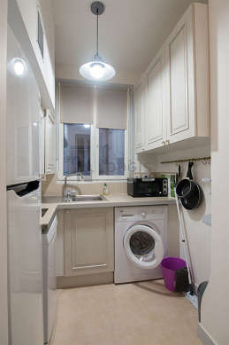 Este apartamento é composto de um charmoso salão com parqué no piso vista sobre pátio. Este salão very quiet mobiliado et equipado para uma agradável estância : televisaõ, sofá, mesa de jantar, mesinha, prateleira, chaminé, 4 cadeira(s), pouffe.