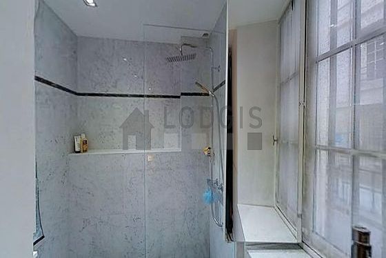 Este apartamento é equipado de uma casa de banho magnífico. Esta sala de água dispõe do necessário pelo seu bem estar na sua vida quotidiana : toalhas de banho, ducheiro separado, sink. Os WC são separados da casa de banho e situados em uma peça independente.