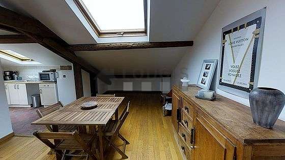 Este apartamento é composto de um atraente salão com parqué no piso vista sobre pátio. Este salão very quiet mobiliado et equipado para uma agradável estância : televisaõ, sofá, 1 poltrona(s), mesa de jantar, bufet, viga, piano, 4 cadeira(s), banco1 sofá-cama.