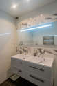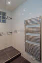 Este apartamento é equipado de uma casa de banho magnífico. Esta sala de água dispõe do necessário pelo seu bem estar na sua vida quotidiana : toalhas de banho, armário, ducheiro separado, secador, sink, radiator secador de toalhas. Os WC são separados da casa de banho e situados em uma peça independente.