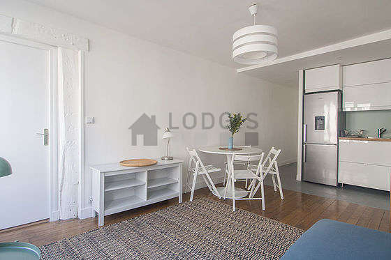 Este apartamento é composto de um bonito salão com parqué no piso vista sobre rua. Este salão calmo mobiliado et equipado para uma agradável estância : televisaõ, sofá, mesa de jantar, mesinha, 4 cadeira(s).