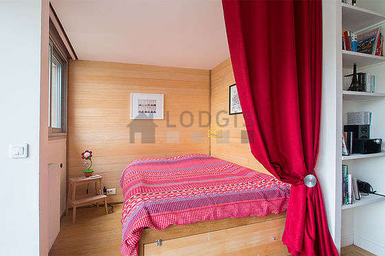 Perto do salaõ, vous propõe-lhe uma magnífico alcova. Equipada de lençois, colchas, armário, mesinha de cabeceira, esta alcova é uma verdadeira peça de vida suplementar pela sua votre estância.