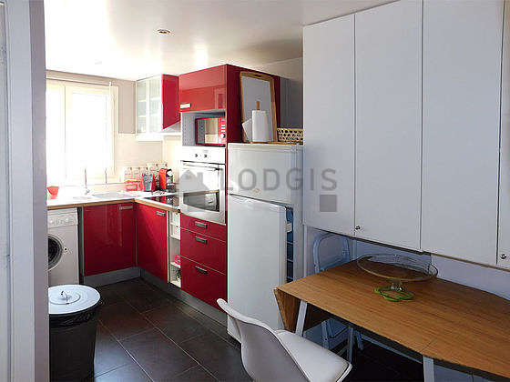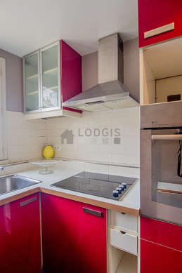 Este apartamento tem uma magnífico cozinha com azuleijo no piso e todo o equipamento pela sua vida quotidiana : fogaõ, frigorífico, congelador, forno, microondas, exaustur, torradeira, chaleira, máquina de café, mesa de jantar, loiça, 1 cadeira(s).