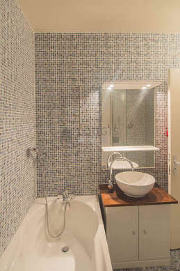 Este apartamento é equipado de uma casa de banho magnífico. Esta sala de água dispõe do necessário pelo seu bem estar na sua vida quotidiana : banheira, ducheiro separado, sink, mirror. Os WC são separados da casa de banho e situados em uma peça independente.