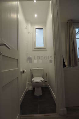 Este apartamento é equipado de uma casa de banho magnífico. Esta sala de água dispõe do necessário pelo seu bem estar na sua vida quotidiana : toalhas de banho, prateleira, guarda-roupa, ducheiro separado, sink, radiator secador de toalhas. Os WC são separados da casa de banho e situados em uma peça independente.