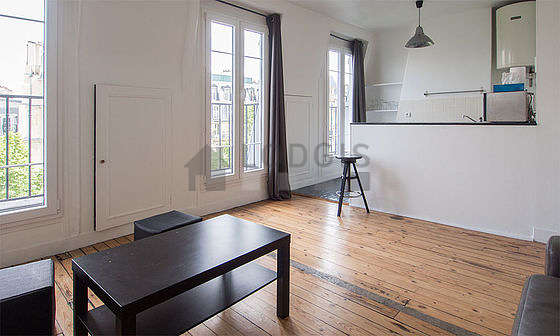 SalaõEste apartamento é composto de um agradável salão com parqué no piso vista sobre rua. Este salão calmo mobiliado et equipado para uma agradável estância : televisaõ, lençois, colchas, sofá, mesinha, roupeiro, prateleira, armário, banco1 sofá-cama.