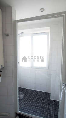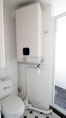 Este apartamento é equipado de uma casa de banho magnífico é clara with janelas vitros duplos. Esta sala de água dispõe do necessário pelo seu bem estar na sua vida quotidiana : toalhas de banho, prateleira, armário, ducheiro separado, sink, radiator secador de toalhas. Os WC são integrados na casa de banho.