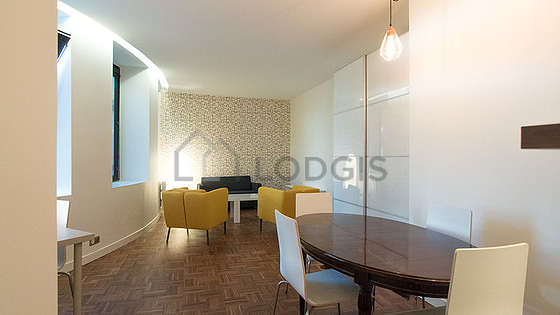 SalaõEste apartamento é composto de um magnífico salão com parqué no piso vista sobre jardim. Este salão very quiet mobiliado et equipado para uma agradável estância : televisaõ, sofá, mesa de jantar, mesinha, secretária, roupeiro, guarda-roupa, armário, 4 cadeira(s).