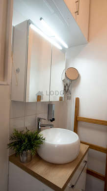 Este apartamento é equipado de uma casa de banho magnífico é clara with janelas vitros duplos. Esta sala de água dispõe do necessário pelo seu bem estar na sua vida quotidiana : toalhas de banho, prateleira, armário, ducheiro separado, secador, sink. Os WC são integrados na casa de banho.
