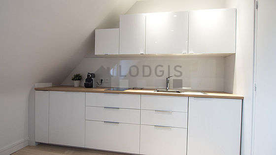 Este apartamento tem uma magnífico cozinha com parqué no piso e todo o equipamento pela sua vida quotidiana : frigorífico, microondas, micro-ondas combinado, freezer, chaleira, máquina de café, mesa de jantar, armário, loiça, 2 cadeira(s).
