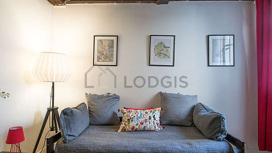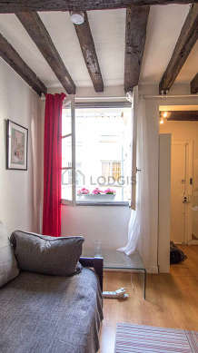 SalaõEste apartamento é composto de um charmoso salão com parqué no piso vista sobre pátio. Este salão very quiet mobiliado et equipado para uma agradável estância : televisaõ, lençois, colchas, sofá, mesinha, roupeiro, prateleira, guarda-roupa, armário, viga1 cama embutida.
