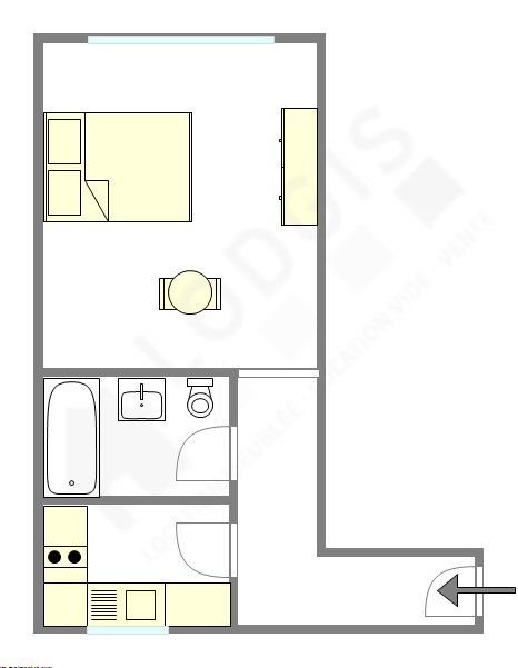 Este apartamento é composto de um salão com azuleijo no piso vista sobre pátio. Este salão calmo mobiliado et equipado para uma agradável estância : televisaõ, lençois, colchas, mesa de jantar, prateleira, guarda-roupa, 2 cadeira(s).