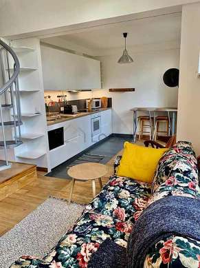 Graças a sua altura de teto, um magnífico mezanino foi possível de ser instalado em este apartamento , oferecendo-lhe uma verdadeira peça suplementar equipada de lençois, colchas, floor lamp.
