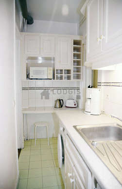 Este apartamento tem uma bonita cozinha com azuleijo no piso e todo o equipamento pela sua vida quotidiana : fogaõ, frigorífico, congelador, forno, microondas, exaustur, torradeira, máquina de café, armário, loiça, banco, bin.