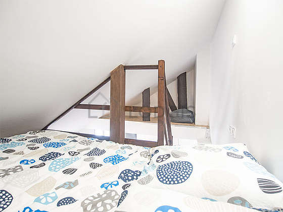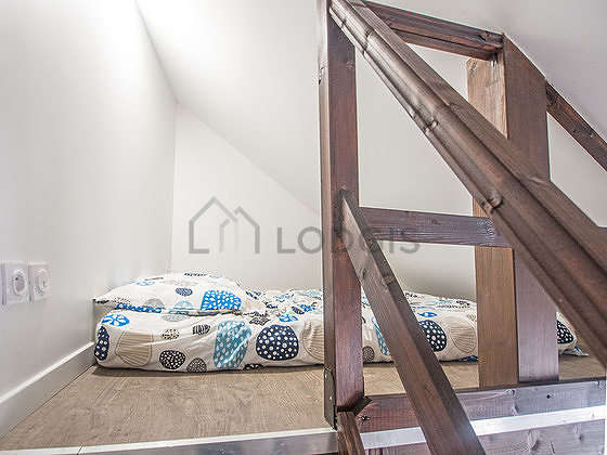 Graças a sua altura de teto, um mezanino foi possível de ser instalado em este apartamento , oferecendo-lhe uma verdadeira peça suplementar equipada de lençois, colchas.