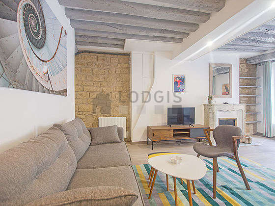 SalaõEste apartamento é composto de um magnífico salão com parqué no piso é janelas vitros duplos é vista sobre rua. Este salão very quiet mobiliado et equipado para uma agradável estância : sofá, mesinha, secretária, 1 cadeira(s).
