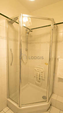 Este apartamento é equipado de uma casa de banho magnífico. Esta sala de água dispõe do necessário pelo seu bem estar na sua vida quotidiana : toalhas de banho, armário, ducheiro separado, sink. Os WC são separados da casa de banho e situados em uma peça independente.