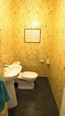 Este apartamento é equipado de uma casa de banho magnífico. Esta sala de água dispõe do necessário pelo seu bem estar na sua vida quotidiana : toalhas de banho, armário, banheira, sink. Os WC são separados da casa de banho e situados em uma peça independente.