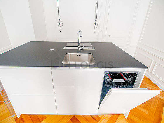 Este apartamento tem uma magnífico cozinha com parqué no piso e todo o equipamento pela sua vida quotidiana : fogaõ, frigorífico, forno, micro-ondas combinado, exaustur, torradeira, chaleira, máquina de café, loiça, bar.