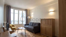 SalaõEste apartamento é composto de um magnífico salão com parqué no piso vista sobre rua. Este salão calmo mobiliado et equipado para uma agradável estância : televisaõ, sofá, mesinha, comoda, 1 cadeira(s).