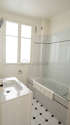 Este apartamento é equipado de uma casa de banho agradável é muito clara. Esta sala de água dispõe do necessário pelo seu bem estar na sua vida quotidiana : toalhas de banho, prateleira, armário, banheira, ducheiro separado, sink, radiator secador de toalhas. Os WC são integrados na casa de banho.