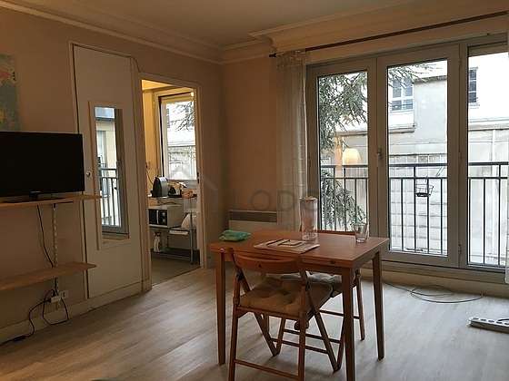SalaõEste apartamento é composto de um charmoso salão com parqué no piso é janelas vitros duplos é vista sobre pátio. Este salão calmo mobiliado et equipado para uma agradável estância : televisaõ, lençois, colchas, sofá, mesa de jantar, roupeiro, prateleira, 2 cadeira(s)1 cama.