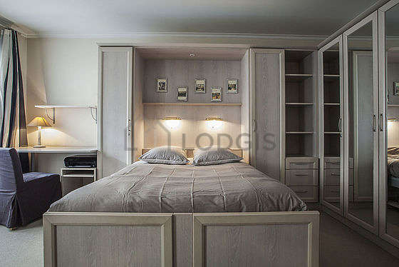 SalaõEste apartamento é composto de um salão com alcatifa no piso é janelas vitros duplos é vista sobre rua. Este salão calmo mobiliado et equipado para uma agradável estância : televisaõ, lençois, colchas, sofá, 1 poltrona(s), mesa de jantar, secretária, roupeiro, biblioteca, prateleira, comoda, armário, loiça, 1 cadeira(s), mesinha de cabeceira, tv stand, coat stand, painting1 cama.
