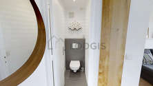 Este apartamento é equipado de uma casa de banho magnífico. Esta sala de água dispõe do necessário pelo seu bem estar na sua vida quotidiana : toalhas de banho, armário, ducheiro separado, secador, sink. Os WC são separados da casa de banho e situados em uma peça independente.