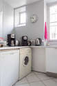Este apartamento tem uma bonita cozinha com azuleijo no piso e todo o equipamento pela sua vida quotidiana : fogaõ, frigorífico, congelador, forno, microondas, exaustur, torradeira, chaleira, máquina de café, armário, loiça.