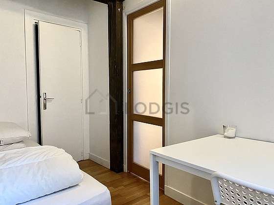 Com parqué no piso vista sobre rua, este quarto atraente oferece o equipamento necessário para descansar durante sua estância : lençois, colchas, prateleira, guarda-roupa, viga, mesinha de cabeceira1 cama.