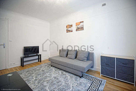 Este apartamento é composto de um charmoso salão com parqué no piso é janelas. Este salão calmo mobiliado et equipado para uma agradável estância : televisaõ, mesa de jantar, comoda, 2 cadeira(s), tv stand, curtains, painting, carpet1 sofá-cama.