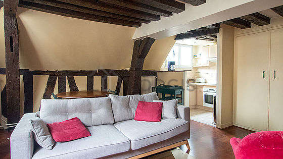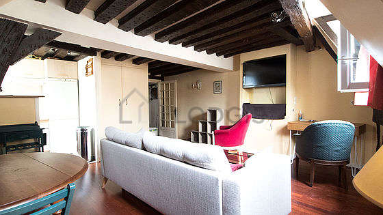 SalaõEste apartamento é composto de um agradável salão com parqué no piso vista sobre rua. Este salão very quiet mobiliado et equipado para uma agradável estância : televisaõ, sofá, 2 poltrona(s), mesa de jantar, mesinha, prateleira, viga, 2 cadeira(s)1 sofá-cama.
