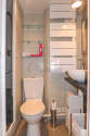 Este apartamento é equipado de uma casa de banho. Esta sala de água dispõe do necessário pelo seu bem estar na sua vida quotidiana : toalhas de banho, comoda, ducheiro separado, secador, radiator secador de toalhas. Os WC são separados da casa de banho e situados em uma peça independente.