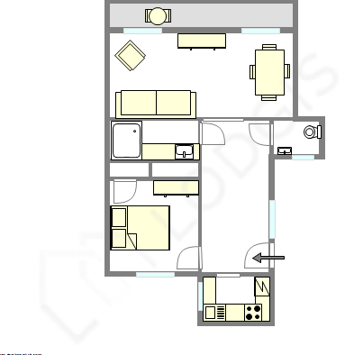 Este apartamento é composto de um soberbo salão com parqué no piso vista sobre rua. Este salão very quiet mobiliado et equipado para uma agradável estância : televisaõ, 1 poltrona(s), mesa de jantar, mesinha, prateleira, chaminé, 4 cadeira(s).